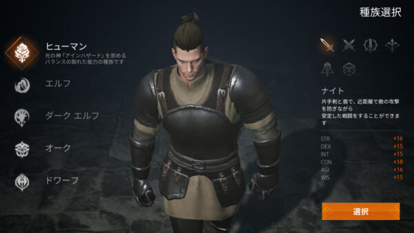 種族はそれほど重要ではないので完全に見た目から選んでも大丈夫ですが、職業は戦闘方法が決まるので、慎重に選びましょう。
