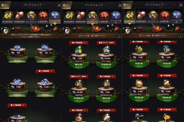 1番安くて120円から購入することができ、おすすめはゲーム開始直前に購入することができる『天来の資源限定特売パック』です。